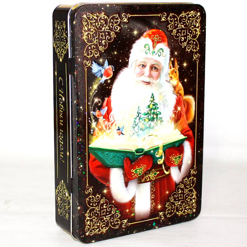Сладкий новогодний подарок в жестяной упаковке весом 430 грамм