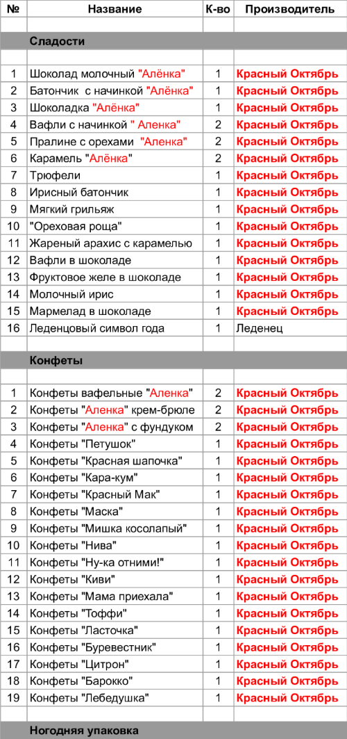 Опубликовано в Составы подарков